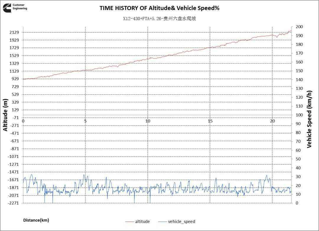 此外在爬坡情况下,配装福康X12动力欧曼自卸车在22km的爬坡道路上,福康X12动力油耗更优于其他品牌动力约14%。